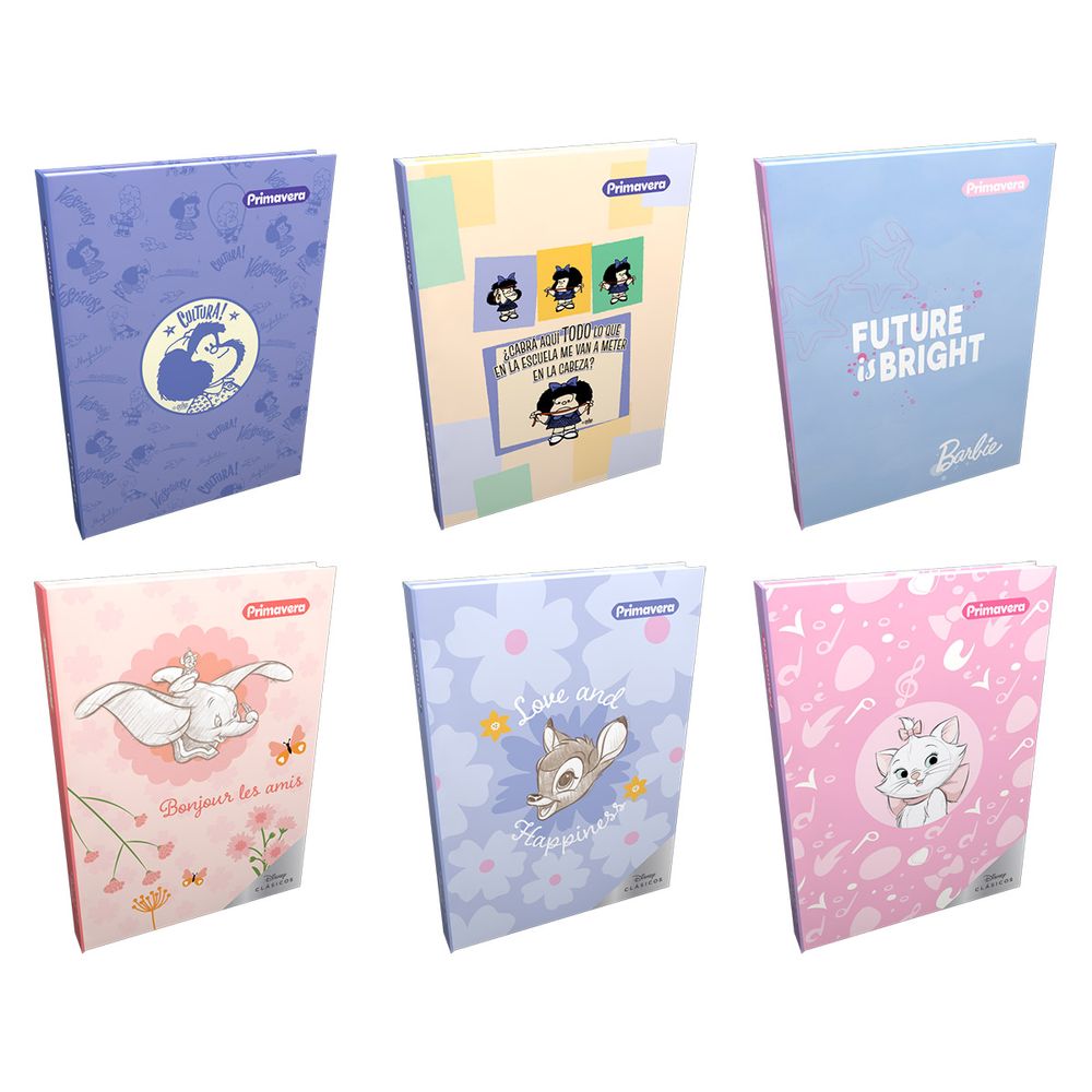 Cada diseño resalta por sus terminados especiales como UV brillante, plastificado matte o estampado metalizado, según la portada. Esta colección forma parte del catálogo original de Primavera y cuenta con la licencia oficial de Primavera. Cuaderno Cosido Pasta Dura Multimaterias Mujer es mucho más que un cuaderno: es un espacio para dejar volar la imaginación, guardar emociones y convertir cada página en un recuerdo inolvidable.